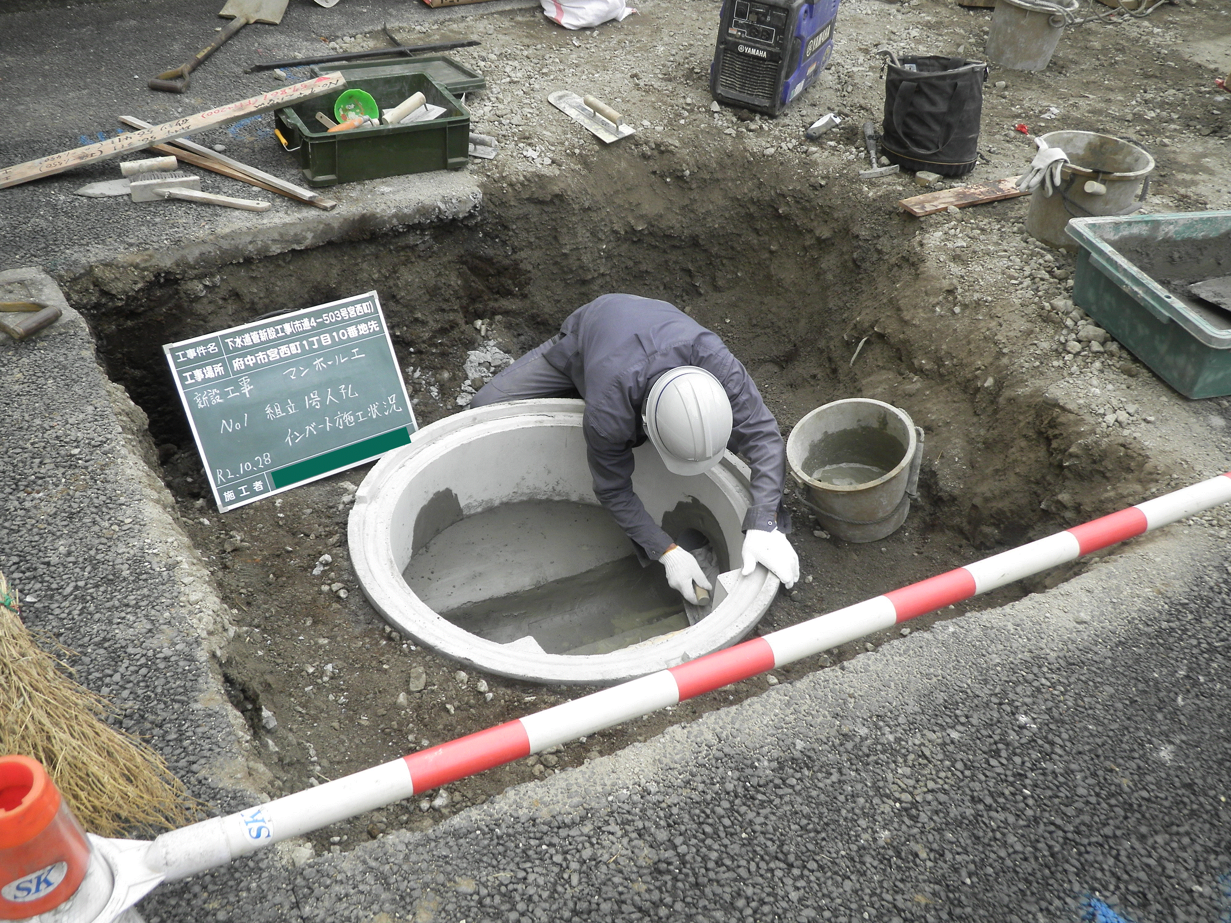 本工事は、市道拡幅改修に合わせ下水道施設を改修する工事を行いました。